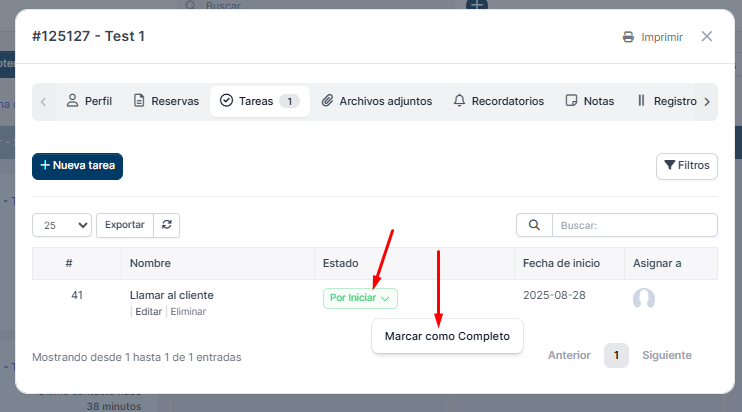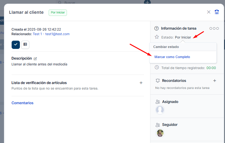 Cuando se realice la tarea desde "Estado" se puede modificar a "Completado"