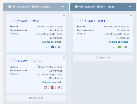 Si existe una tarea pendiente se visulizará un ícono sobre la card de cada leads/clientes de la siguiente manera: